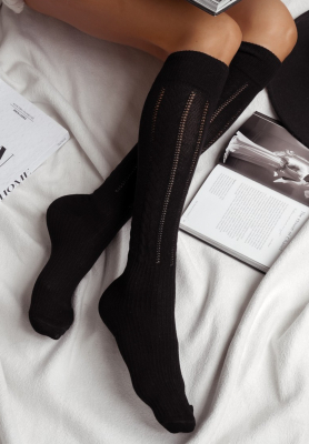 Pończochy z koronką i ozdobnym szwem Linette czarne 20 den
