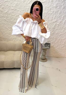 Ażurowe spodnie dzwony La Milla Everywhere Stunner biało-brązowe