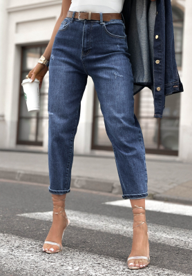 Spodnie jeansowe mom fit z paskiem Hard To Forget niebieskie