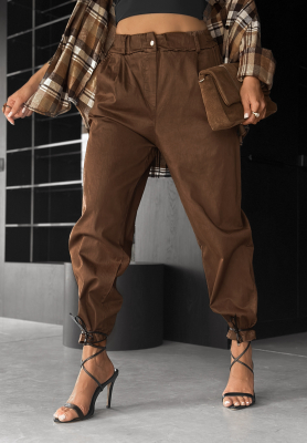 Wiskozowe spodnie haremki ze ściągaczami Coastal Sand czekoladowe