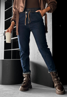 Spodnie jeansowe mom fit z paskiem Let’s Not Talk granatowe