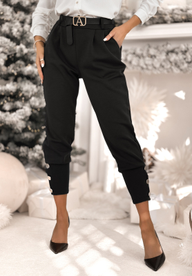 Materiałowe spodnie z guzikami Take A Peek czarne