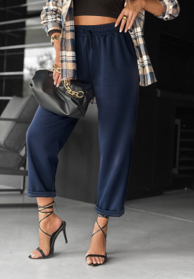 Materiałowe spodnie z wiskozą Chosen Silence granatowe