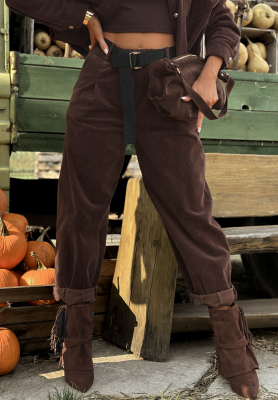 Sztruksowe spodnie mom fit z paskiem Told Him Maybe czekoladowe
