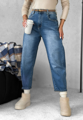 Spodnie jeansowe balloon z paskiem Freya niebieskie