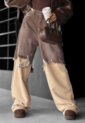 Spodnie jeansowe baggy z dresowymi nogawkami The Duo mokka