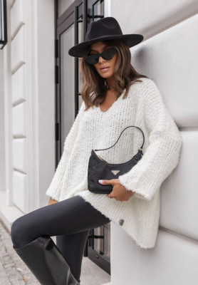 Lekki sweter z dekoltem i koronką Cozy Cloud biały