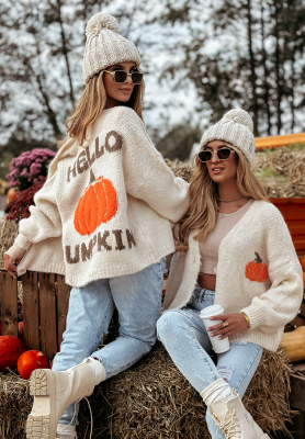 Krótki kardigan z wełną Hello Pumpkin beżowy