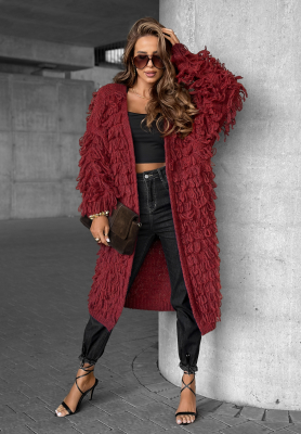 Długi kardigan z frędzlami Fringe burgundowy