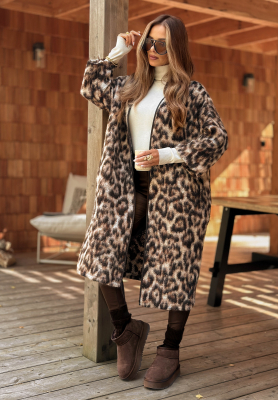 Długi wełniany kardigan w panterkę Sultry Fave beżowy