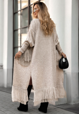 Długi kardigan z frędzlami Find Her Glow beżowy