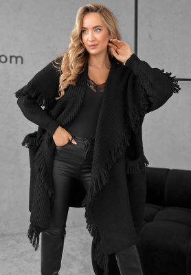 Pleciony sweter z frędzlami Whisper Touch czekoladowy