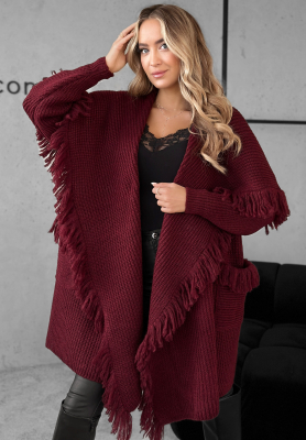 Długi kardigan z frędzlami Forget My Name burgundowy