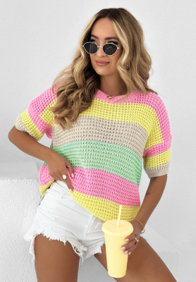 Lekki ażurowy sweter oversize Sweet Gelato różowy