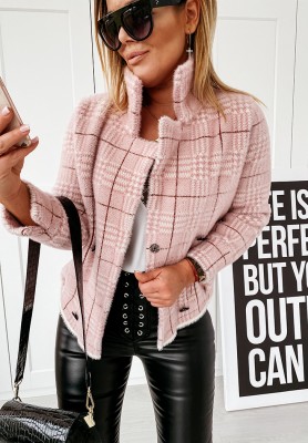 Krótka kurtka sherpa kożuszek April Feels pudrowy róż