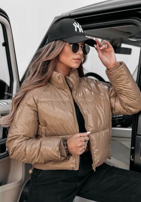 Krótka pikowana kurtka z połyskiem Aim High camelowa