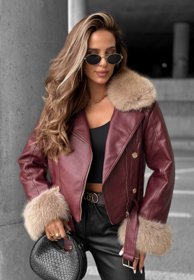 Krótka skórzana ramoneska z futerkiem The Woodlands burgundowa
