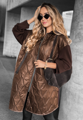 Długa pikowana kurtka z kapturem Through The Day czekoladowa