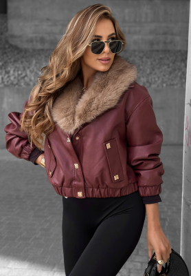 Skórzana kurtka z futerkiem Time Disappears burgundowa