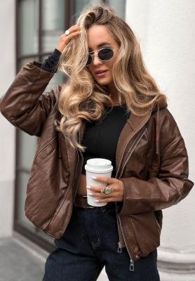 Skórzana kurtka bomberka Don't Make Scenes czekoladowa