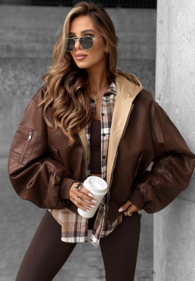 Skórzana kurtka bomberka Don't Make Scenes czekoladowa
