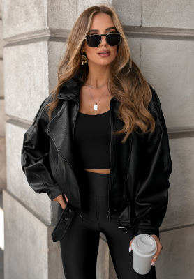 Krótka skórzana kurtka ramoneska Valenti czarna