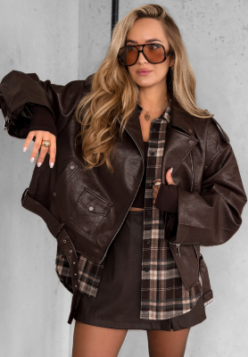 Krótka skórzana ramoneska Not Your Girl czekoladowa