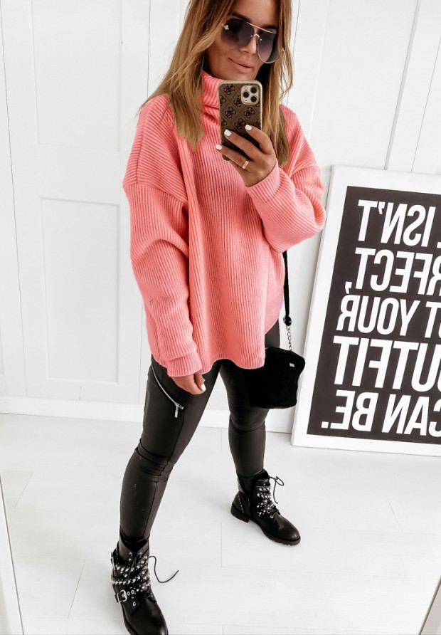 Golf o fasonie oversize to podstawa jesienno-zimowej garderoby, dzięki której stworzysz wiele niebanalnych stylizacji. Model wykonany jest z niezwykle ciepłego, prążkowanego materiału. Skomponuj go z jeansami, długim płaszczem i botkami a Twój look zachwyci nie tylko Ciebie!* materiał elastyczny* prążkowana dzianina* fason oversize