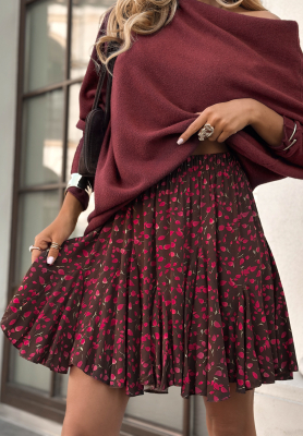 Wiskozowa spódniczka mini we wzory Could Be Anything czekoladowo-czerwona