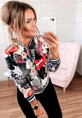 Wzorzysta bluza bomberka Komiks czarna
