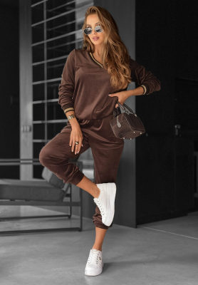 Welurowy komplet dresowy Unfollowed czekoladowy