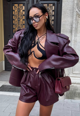 Krótkie skórzane spodenki Affectional burgundowe