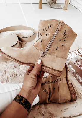 Ażurowe botki zamszowe Bliss beżowe