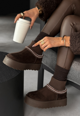 Zamszowe botki z klamerkami Coldest Months czekoladowe