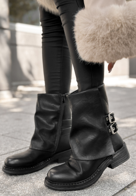 Skórzane botki z klamrami Talk About You czarne
