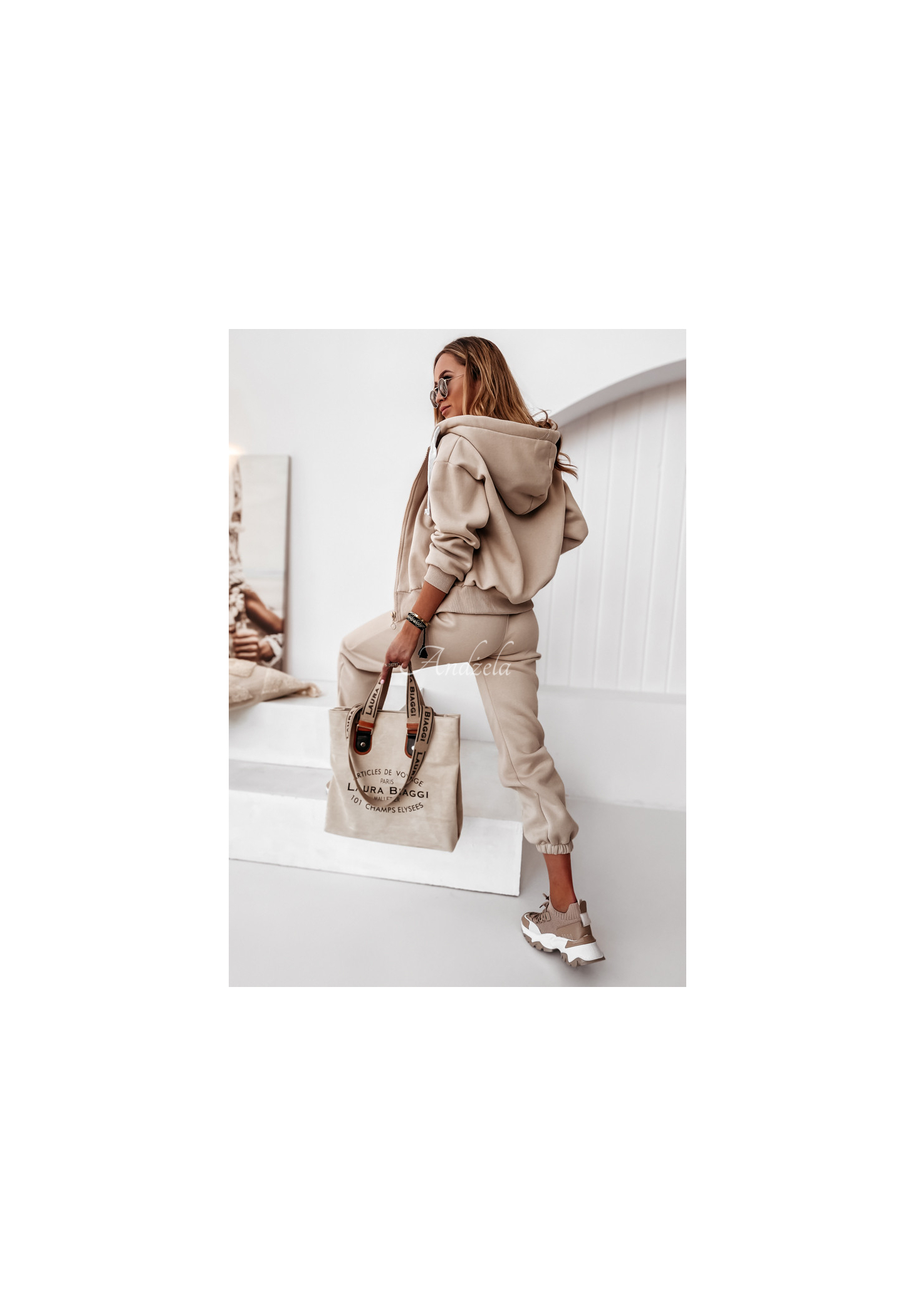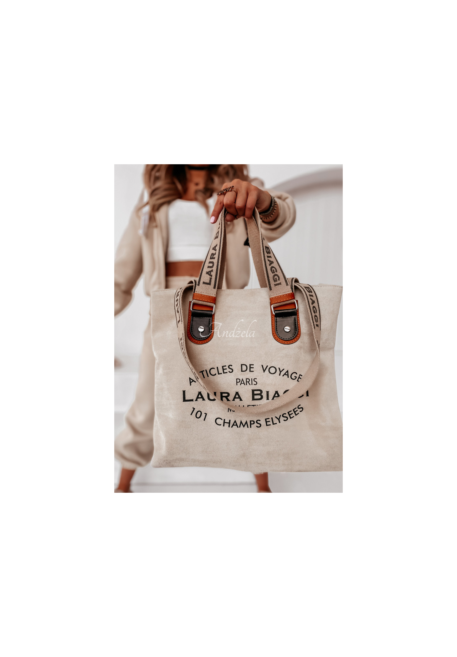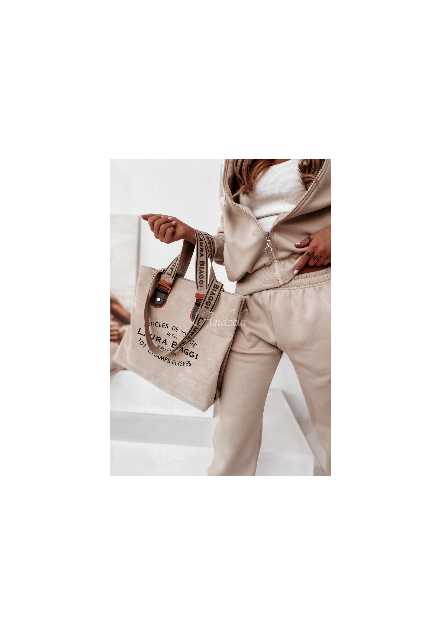 Stylowa, jednokomorowa torebka, wykonana z materiału imitującego zamsz. Propozycja wyróżnia się minimalistycznym nadrukiem oraz szerokimi paskami. Prezentują się one nowocześnie i niebanalnie, a w dodatku są wygodne i komfortowe w noszeniu. Model świetnie sprawdzi się jako dopełnienie wielu codziennych stylizacji.