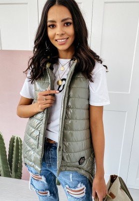 Pikowana kamizelka z kapturem Spring Touch beżowa