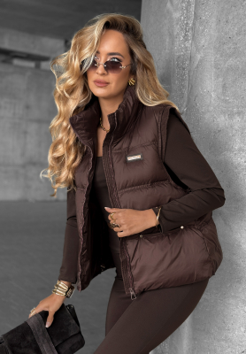 Pikowana kamizelka z kapturem On Rainy Days czekoladowa