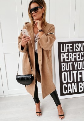 Długi wełniany płaszcz alpaka z angorą Be With Me czekoladowy