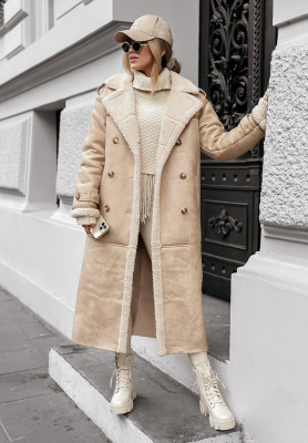 Długi płaszcz kożuszek z kołnierzem Create The Impossible beżowy
