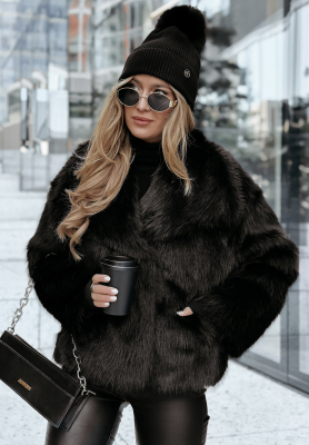 Krótki płaszcz z kołnierzem Casual Calm czarny
