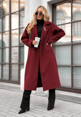 Długi wełniany płaszcz Next Chapter burgundowy