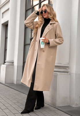Długi dwurzędowy płaszcz z kołnierzem We Both Know beżowy