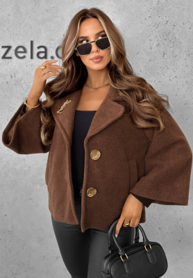 Krótki płaszcz z kołnierzem Casual Calm czekoladowy
