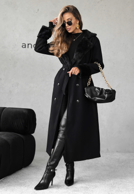 Krótki płaszcz z kołnierzem Casual Calm czarny