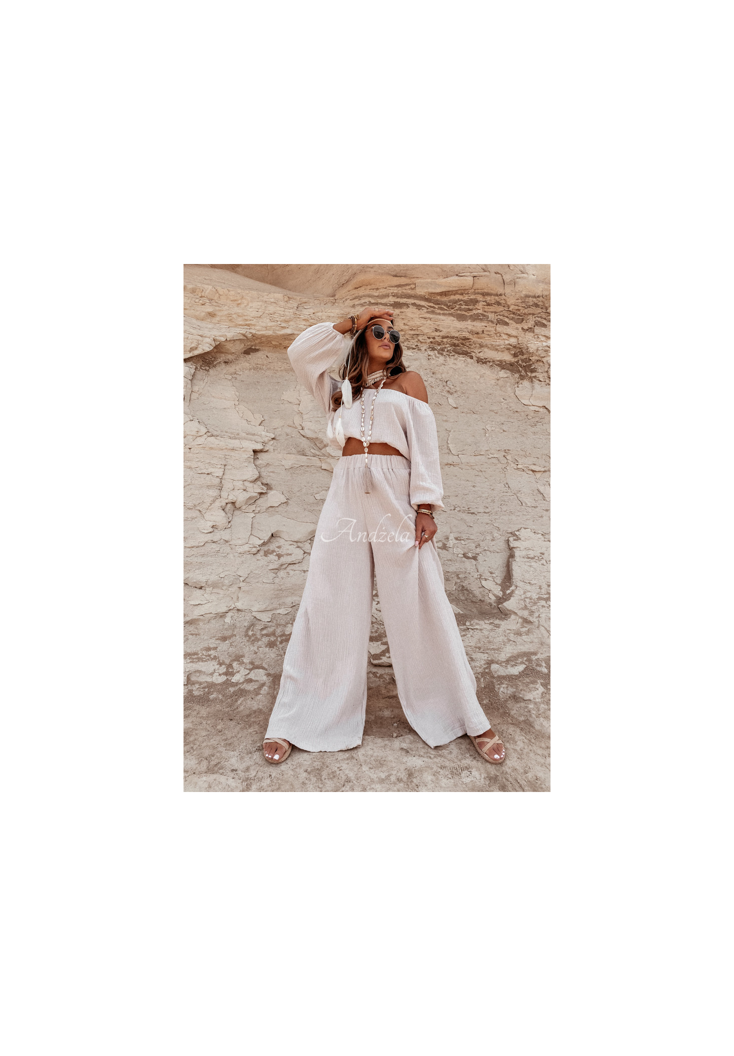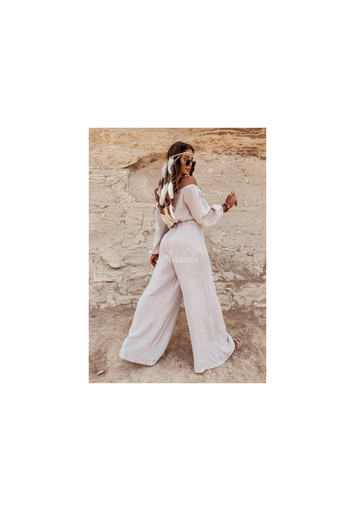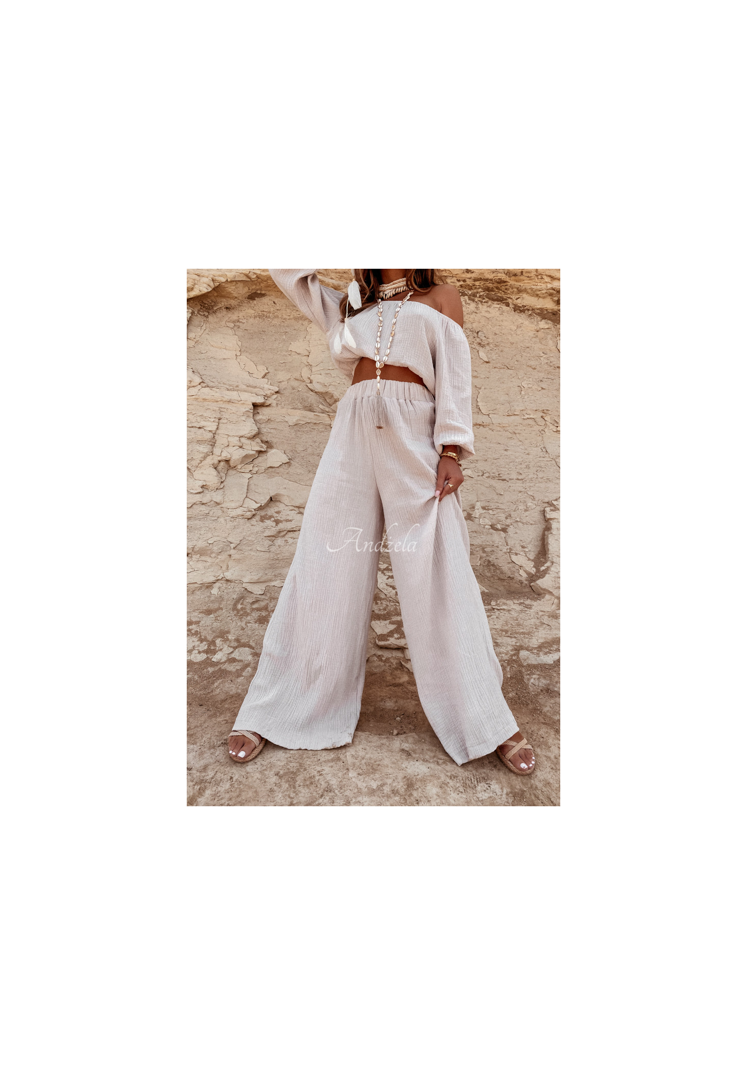 Delikatne spodnie z szerokimi nogawkami oraz wysokim stanem, wykonane z wysokiej jakości muślinowego materiału. Model posiada gumkę w pasie, która zapewnia doskonałe dopasowanie się do sylwetki. To idealna propozycja do wielu letnich stylizacji, skomponuj je z bluzką lub topem z tej samej kolekcji i zapewnij sobie perfekcyjną stylizację na wakacje! Produkt wysokiej jakości, dostępny w kilku wariantach kolorystycznych. Projekt by ANDŻELA!