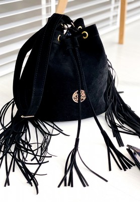 Zamszowa torebka z frędzlami Hold This Moment czarna