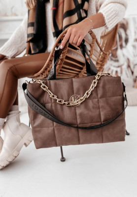 Pikowana torebka z łańcuchem Purella czekoladowa