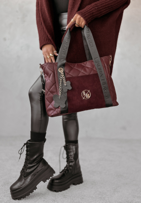 Skórzana torebka z pikowaniem Millain burgundowa