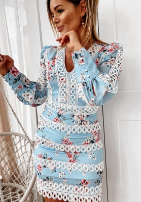 Kopertowa sukienka z bufkami Asla w kwiaty błękitna